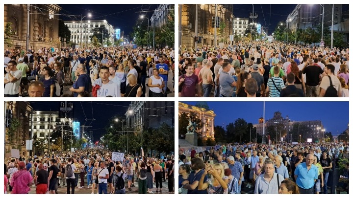 Posle obraćanja govornika, građani su krenuli u protestnu šetnju. Krenuli su preko Terazija, zatim su ušli u Ulicu kralja Milana, a kada su prošli pored zgrade Predsedništva, začuli su se zvižduci. Napomenimo i to, krajnja tačka današnjeg protesta je Vlada Srbije, gde je kolona stigla oko 20.40 časova.