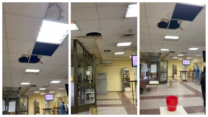 Naime, u ovoj zgradi su, usled pljuska koji je pogodio Beograd ovog ponedeljka, bile postavljene kofe na sve strane, kako bi pokupile vodu koja prodire kroz ogromne rupe na plafonu.