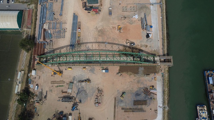 Na gradilištu novog mosta radi se na četiri lokacije. Jedna ekipa radnika uklanja stubove starog mosta, druga postavlja šipove za novi, treća gradi privremeno pristanište, u koje iz Kine 15. novembra treba da stignu barže sa prvim delovima čelične konstrukcije, koja je već u Konstanci.