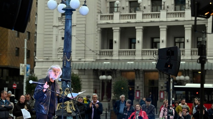 "Ne želimo dijalog sa Bokanom, želimo samo da mu vidimo leđa": Protest ispred Narodnog pozorišta