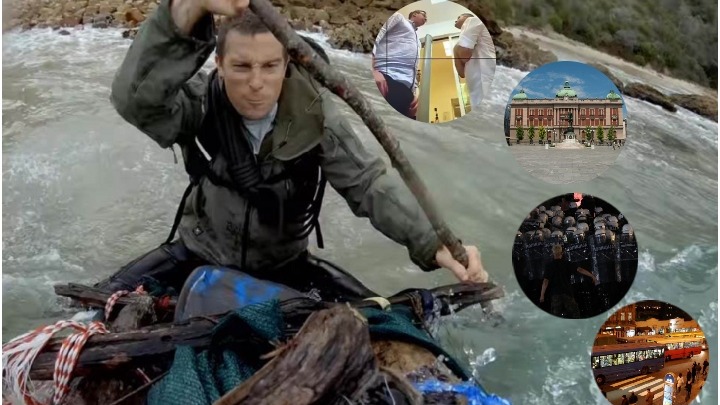 I tu mi čekamo Bera Grilsa: da se u slučaju demonstracija pridruži protestantima i preživi srpsku policiju. A čekaju ga brojna iskušenja. Od kao što rekoh pendrečenja - do gaženja konjima. Biće obilato čašćen i nekim ekstremnio jakim suzavcem, a juriće ga i psi. Na kraju zna se: čekaju ga konačno i navijači da mu gaze po glavi i mlate ga, a po potrebi bogami i hapse, u kom slučaju bi morao da se pomoli bogu da ne završi u nekom Ritopeku.