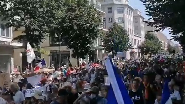 U nešto manjem broju nego prošle sedmice, protivnici kovid potvrda i obavezne vakcinacije protiv koronavirusa mirno su protestovali u subotu u Francuskoj, protiveći se eventualnom vakcinisanju svoje dece i unučadi, koje nije predviđeno.