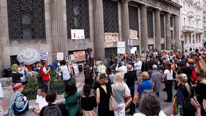Podsetimo, Asocijacija Nezavisna kulturna scena Srbije pozvala je pre neki dan sve kulturne radnike na protest u Vlajkovićevoj ispred zdanja Ministarstva kulture Srbije, jer je to ministarstvo objavilo, kršeći zakonski rok, rezultate konkursa kojima su potvrdili potpuni izostanak brige, kompetencija i znanja o sektoru kulture, te potpune nespremnosti za dijalog sa umetnicima i kulturnim radnicima, koje navodno zastupaju.