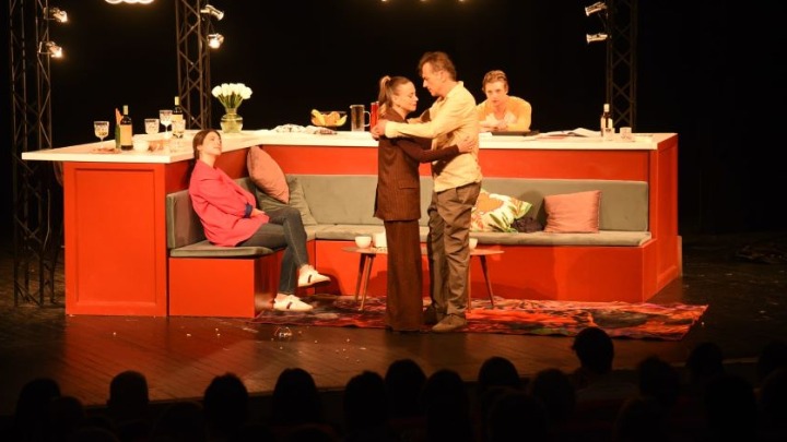Radnja naizgled jednostavna – večera dvoje komšija koja prerasta u niz neočekivanih priznanja i predloga – na sceni se pretvara u dinamičnu igru istina, poluistina i neizgovorenih emocija. Upravo u tom sudaru svakodnevnog i intimnog, predstava pronalazi svoj najjači adut: humor koji ne služi samo kao sredstvo zabave, već kao način da se razotkriju usamljenost, strahovi i nesigurnosti savremenog čoveka.