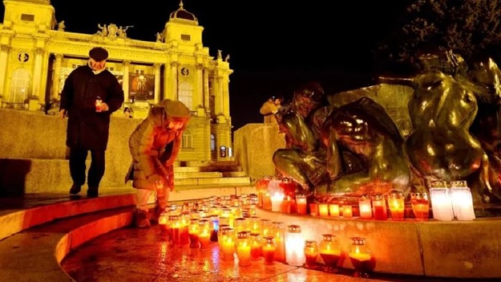 Na Trgu Republike Hrvatske građani su se sinoć okupili i uz Meštrovićev bunar života položili cveće, sveće, poslednje pozdrave ispisane na papirićima i u pismima.