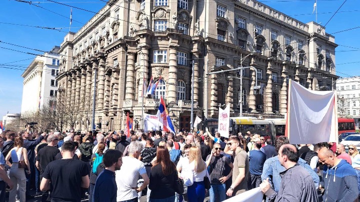 - Danas nam traže Kosovo, sutra će nam tražiti Vojvodinu - rekao je Obradović, a to je ujedno bio i najistaknutiji transparent na skupu, "Danas kosovo, sutra Vojvodina", pored onog na kom je pisalo "Vučicu, ostavka i izbori".