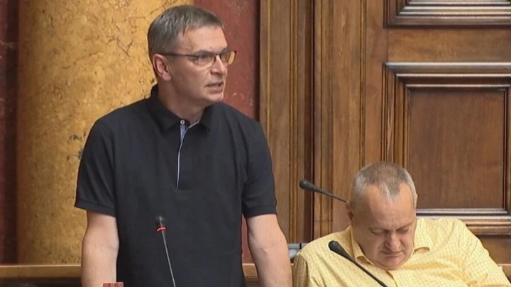 Na početku govora, Jovanović je, nakon izrečenih opomena opozicionim poslanicima, pitao Brnabić zašto i njemu nije izrekla opomenu.