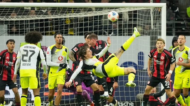 Fudbaleri Ajntrahta i Borusije Dortmund priredili su pravi spektakl u Frankfurtu, pošto je njihov duel 16. kola Bundeslige završen bez pobednika - 3:3. Na stadionu u Frankfurtu viđena je utakmica za pamćenje, sa čak šest golova, brojnim preokretima i dramatičnom završnicom, kakva se retko viđa na nemačkim terenima.