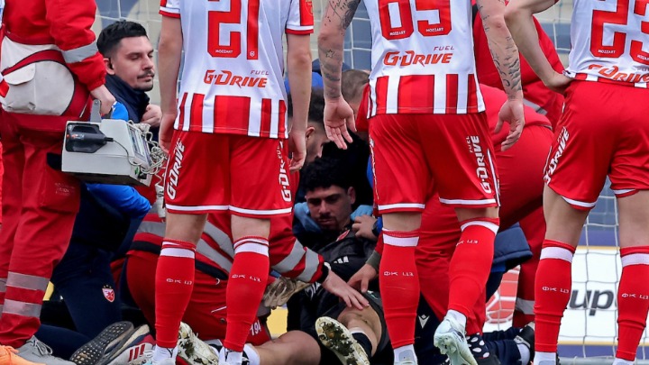 Golman Crvene zvezde, Mateus, doživeo je užasan udarac kopačkom u glavu, dok je bio u žaru borbe sa fudbalerom Abdulahijom iz Novog Pazara.