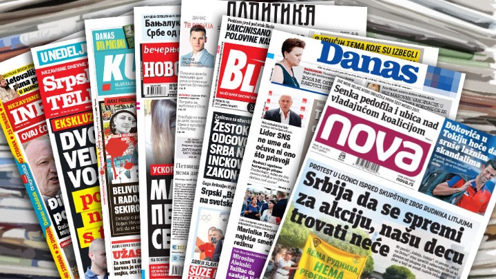 Naslovne strane štampanih medija za nedelju, 29. avgust