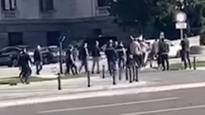 Grupa napadača prilazi šetačima i jedna od njih gura Nenada, dok ga drugi prihvata i počinje da ga davi, a sve to u prisustvu policije, koja ih tek nakon što je sukob pretio da eskalira ozbiljnim posledicama, konačno razdvaja.