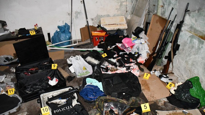- Policija je prilikom ove opsežne akcije, pretresom stana i drugih prostorija i garažnog prostora zaplenila je dve modifikovane - improvizovane eksplozivne naprave sa daljinskim aktiviranjem i pratećom opremom, puškomintraljez, snajpersku pušku, pet automatskih pušaka, tri automatska pištolja – hekler, uzi i škorpion, dva poluautomatska pištolja, revolver, protivpešadijsku minu usmerenog dejstva, lovačku karabinsku pušku, pet prigušivača za automatsko oružje, nekoliko stotine komada municije različitog kalibra, dva pancirna prsluka sa oznakama "Policija", sredstva za vezivanje - lisice, više komada opasača i futrola za vatreno oružje, improvizovanu službenu legitimaciju MUP-a Srbije, ručne radio stanice za komunikaciju i više maski za sakrivanje lica.