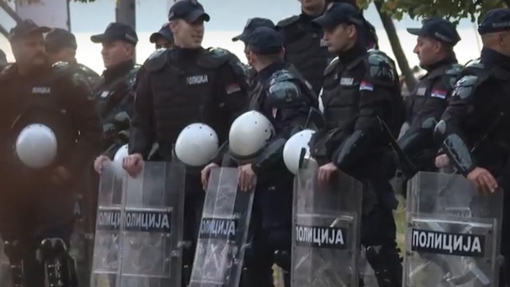 "Idite na Kosovo“, vikali su okupljeni policiji koja ih je gurala do pruge.