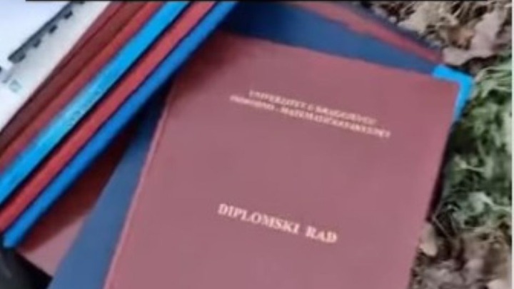 Diplomski i master radovi studenata "završili" su pored kontejnera prekoputa Instituta za fiziku kragujevačkog Prirodno-matematičkog fakulteta, objavljeno je na Instagram stranici "Infocentrala". Sa PMF-a su za Glas Šumadije poručili da su radove sklonili čim su ih videli i da će povodom ovog događaja sprovesti proceduru u skladu sa zakonom.
