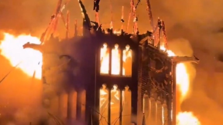Na društvenim mrežama pojavilo se nekoliko snimaka koji prikazuju razmere požara i kako je crkva u potpunosti zahvaćena plamenom.