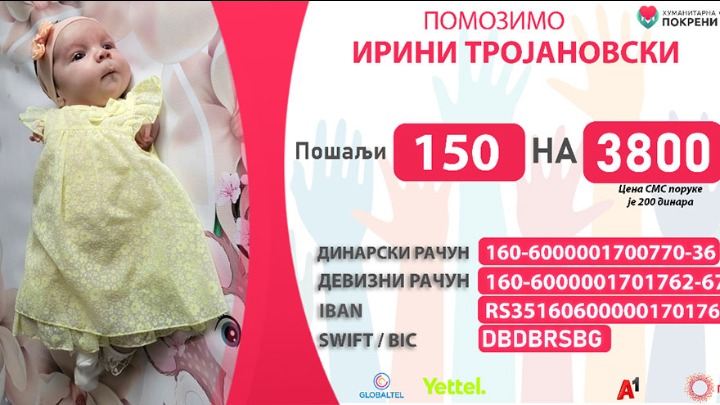 Ovim putem želimo da uputimo poziv svim ljudima velikog srca da pomognemo maloj Irini da dobije svoj prostor prilagođen njenim potrebama, kupatilo gde može sama da priđe invalidskim kolicima, rampu i sve što joj bude potrebno za normalan život.