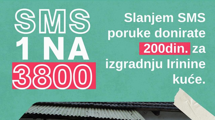 Slanjem poruke sa sadržajem 1 na broj 3800 donirate 200 dinara za izgradnju kuće.